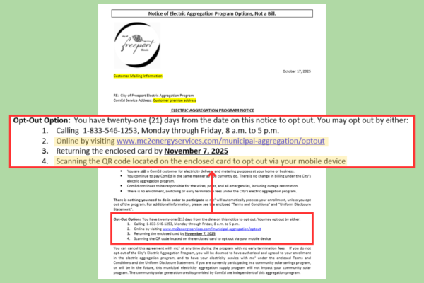 I’ll stress this again before I move on to why this program can be a benefit, “If you do not opt-out of the City’s Electric Aggregation Program, you will be deemed to have authorized and agreed to your enrollment in the electric aggregation program.”